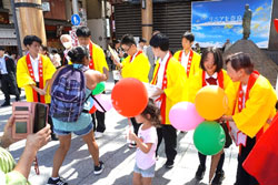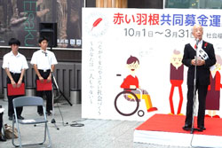 式典後、県立高等養護学校生徒6名は「赤い羽根共同募金、おねがいしま~す」と募金活動をしました。
