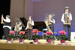 インドネシア竹製楽器のアンクルンの音色が会場いっぱいに広がり、観客は魅了されました。