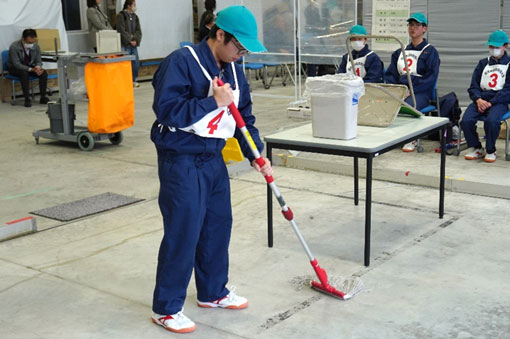 ビルクリーニング出場の高等養護学校生徒7名は、学校で練習を繰り返し、努力の成果があふれた立派に成長したを見せてくれました。