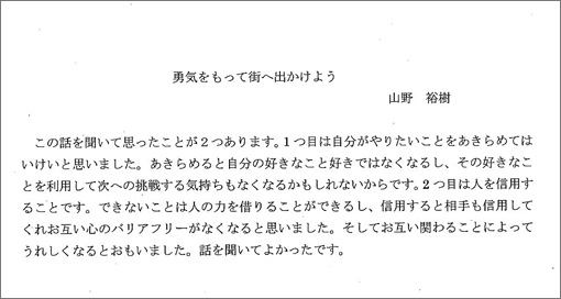 高等部 1年生 山野裕樹(やまの ゆうき)