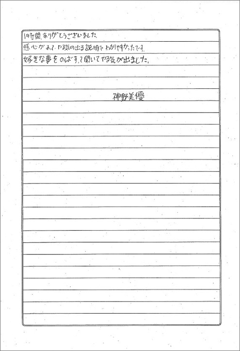 9名の素直な高校生から“元気”をいただく!とてもうれしい。