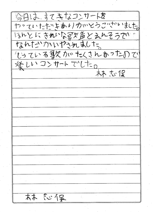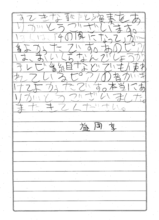 ピアノと歌声で会場のみんなの心が一つになるコンサートでした。