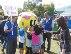 長屋くん(平群町)秋晴れのさわやかな季節、昨年に引き続き、特別支援学校生徒が受付および市町村のマスコット着ぐるみに入り、来場者と楽しく過ごしました。高等養護学校卒業生もボランティアにかけつけ、主催者スタッフとして活躍してくれました。充実した1日を経験し、生徒・卒業生は大満足でした。