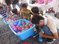 毎月11日「人権を確かめあう日」大和高田市民集会(2013年4月11日開催)がご縁で、この度の取り組みとなりました。 生徒たちは、ヨーヨー釣りの風船作りをしながら、午後5時から9時までひっきりなしのお客様(子どもたち)を迎えさせていただきました。「楽しかった!」生徒たちは、満面の笑みで語ってくれました。 主催者の役員さんからは、「しっかり仕事をしていただいて、とても助かりました。来年も是非、お願いします。」とのお言葉をいただきました。 大和高田市商業者組織連合会のみなさま、ありがとうございます。
