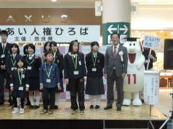 人権啓発ポスター・標語優秀作品の展示、ミニコンサートと共に、平成26年度人権メッセージ入賞者の表彰が影山清・奈良県くらし創造部長から行われました。