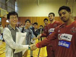 奈良西ロータリークラブ様から特別支援学校生徒卒業生・家族等71人が招待されました。選手から色紙、マフラータオルをプレゼントされ、記念撮影も一緒に行いました。スピードある迫力の試合を観戦でき、生徒卒業生は大喜びでした。