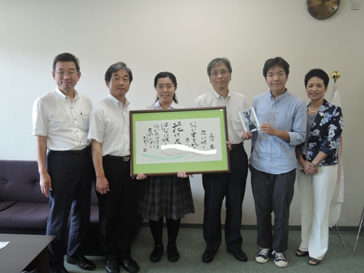 「キラリと輝く!特別支援学校アート展2015」開催の報告と案内のため、表敬訪問させていただきました。また、生徒たちは、出展作品の説明をさせていただきました。