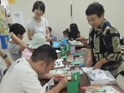 ・ペーパークラフトに挑戦しました。何とかできましたが、隣に来た子は半分の時間で仕上げていました。