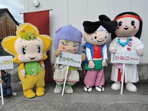 ゆるキャラ(ももたん、みやっぴー、ひみこちゃん、さららちゃん)!