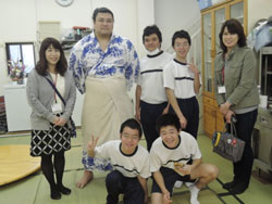 大和ガス株式会社・中井隆男代表取締役社長のお世話で、生徒たちは、同社(大和高田市)に宿舎を置く大相撲・錣山部屋(親方:元関脇寺尾)において風呂清掃、ちゃんこ鍋料理のボランティア活動をさせていただきました。