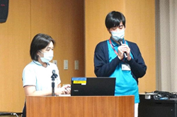 発達障害、精神障害のある係員4名はタオル折り、保育器洗浄、包帯巻き、パソコン入力などに従事しています。4名は参加者からのスマートフォンによる質問に応え、自らの障害のこと、特性、業務内容、仕事のやりがい、支援者(上司)へのお願い等、率直に話されました。