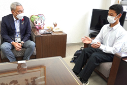 上山丈瑠(たける)選手は地元御所市役所へ東川裕市長を表敬訪問しました。