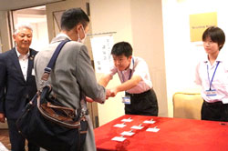 生徒たちは「こんにちは」と挨拶しながら名札の手渡し、駐車券処理の受付係をさせていただきました。
