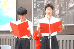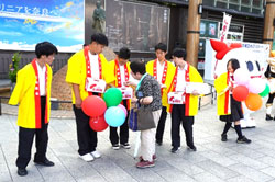 式典後、県立高等養護学校生徒6名は「赤い羽根共同募金、おねがいしま~す」と募金活動をしました。