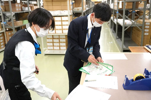 先輩のチャレンジド社員にていねいに教えていただきながら、ピッキング作業、発送作業、名刺印刷等を経験しました。