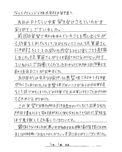 県立高等養護学校3年生は2回目の職場実習に入りました。